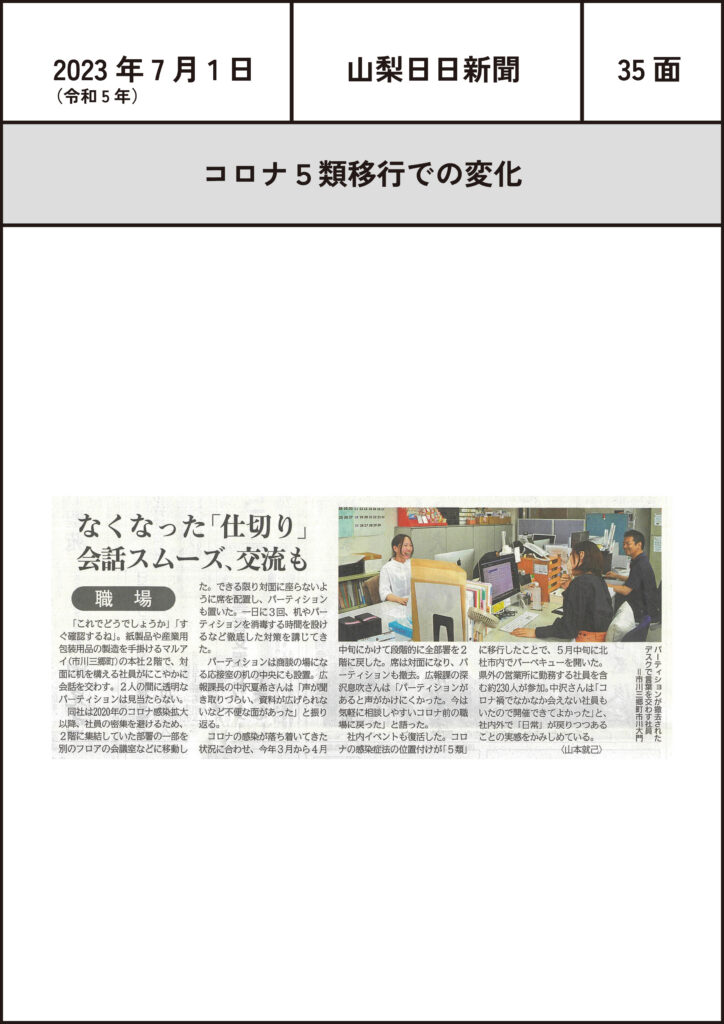 (2023.7.1)コロナ5類移行での変化 2023-07-01 投稿先 マルアイのこと, 山梨日日新聞 2023 山梨日日新聞 ← 過去の投稿へ 次の投稿へ → コメントを残すメールアドレスが公開されることはありません。 ※ が付いている欄は必須項目ですコメント ※ 名前 メール サイト