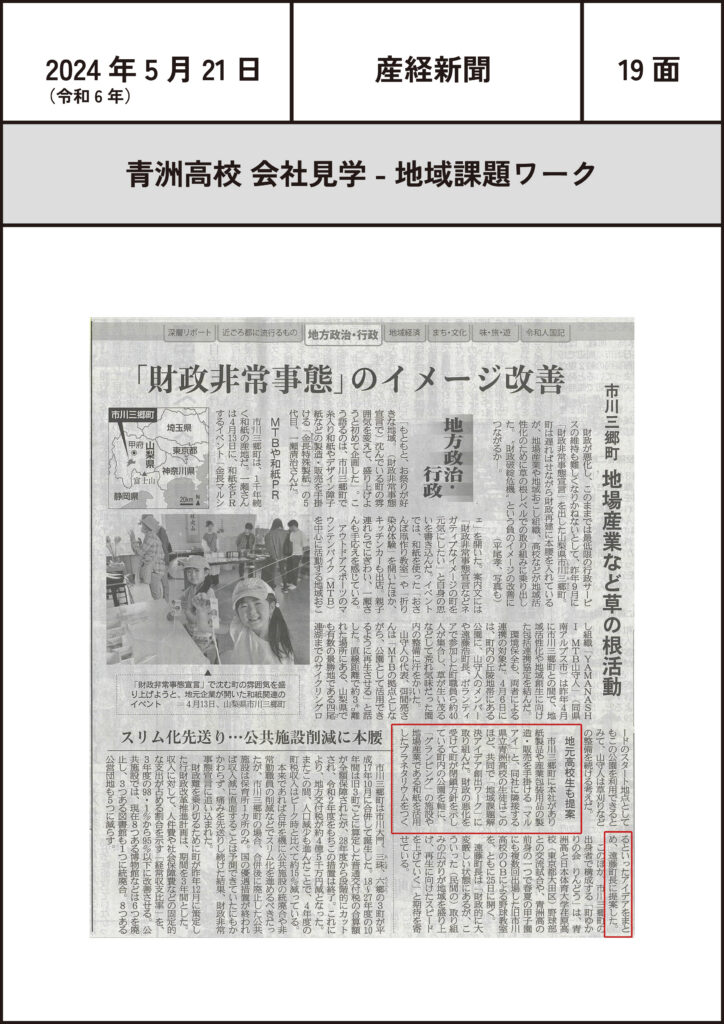 (2024.5.21)青洲高校 会社見学 2024-05-21 投稿先 地域のこと, 産経新聞 2024 会社見学 地域課題 産経新聞 青洲高校 ← 過去の投稿へ 次の投稿へ → コメントを残すメールアドレスが公開されることはありません。 ※ が付いている欄は必須項目ですコメント ※ 名前 メール サイト