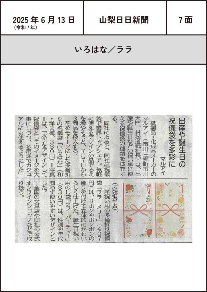 (2025.6.13)いろはな/ララ 2025-06-13 投稿先 商品のこと, 山梨日日新聞 2025 いろはな ララ 山梨日日新聞 ← 過去の投稿へ 次の投稿へ → コメントを残すメールアドレスが公開されることはありません。 ※ が付いている欄は必須項目ですコメント ※ 名前 メール サイト
